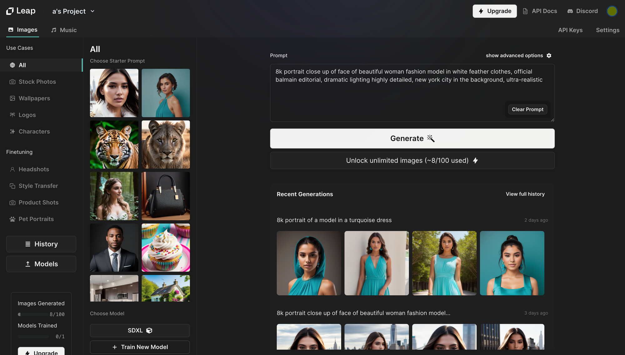 Generate Images with top open source models like SDXL, Stable Diffusion 1.5, Realistic Vision, & more using Leap API!